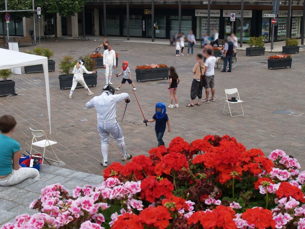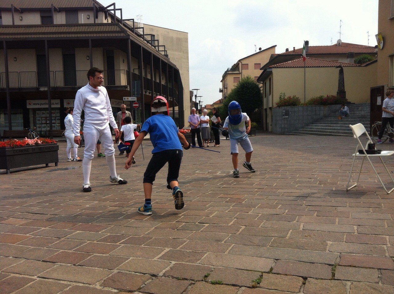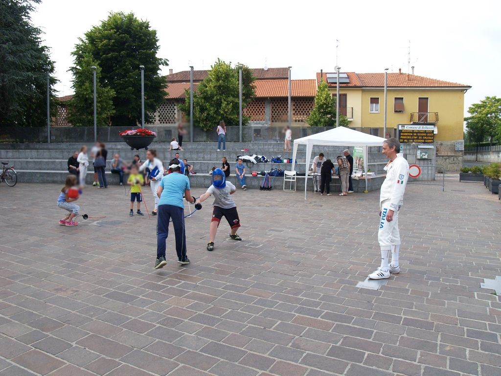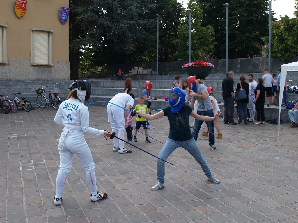Domenica 31 Maggio dalle ore 16 i volontari e gli istruttori del Club di Scherma brianzolo hanno portato la scherma in piazza a Bellusco facendo partecipare a giovani e meno giovani a dimostrazioni pratiche di scherma.