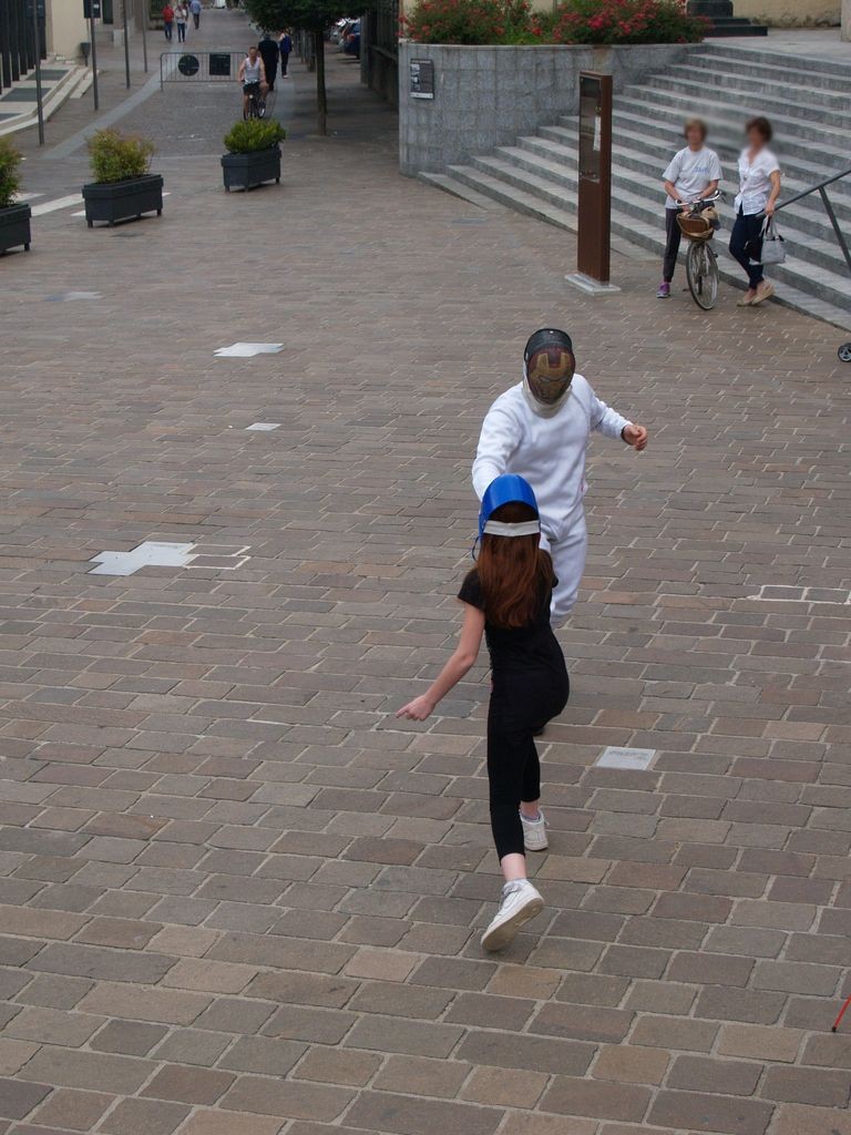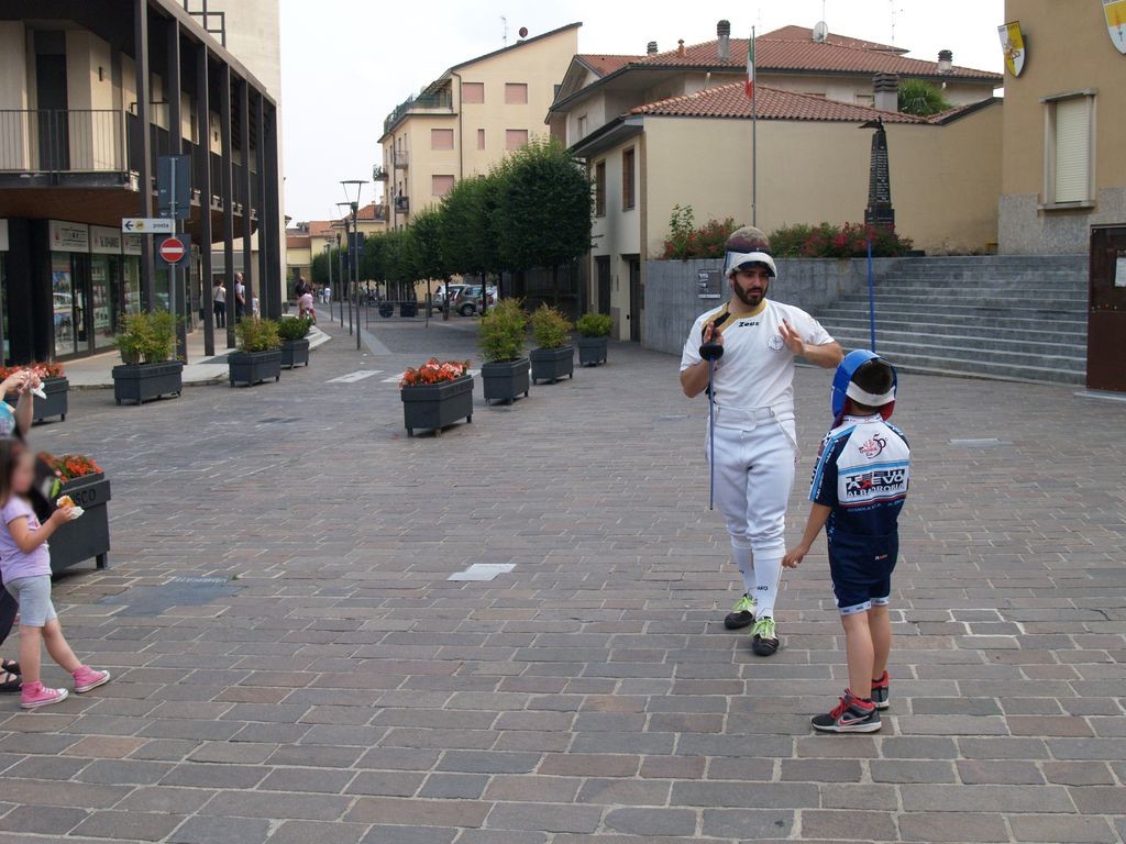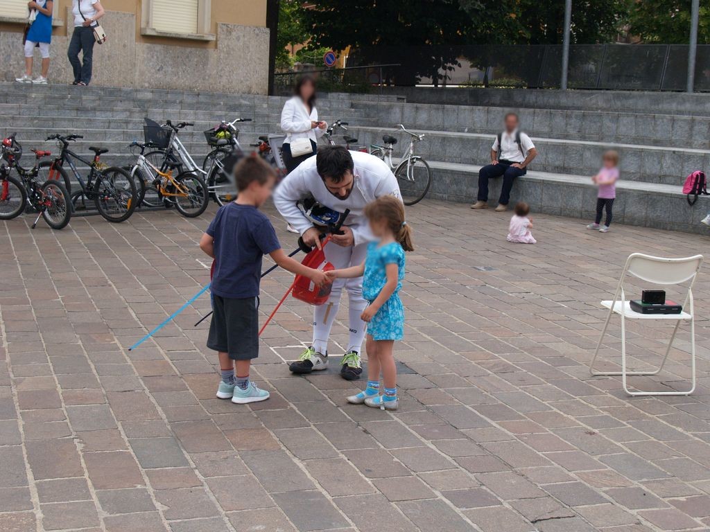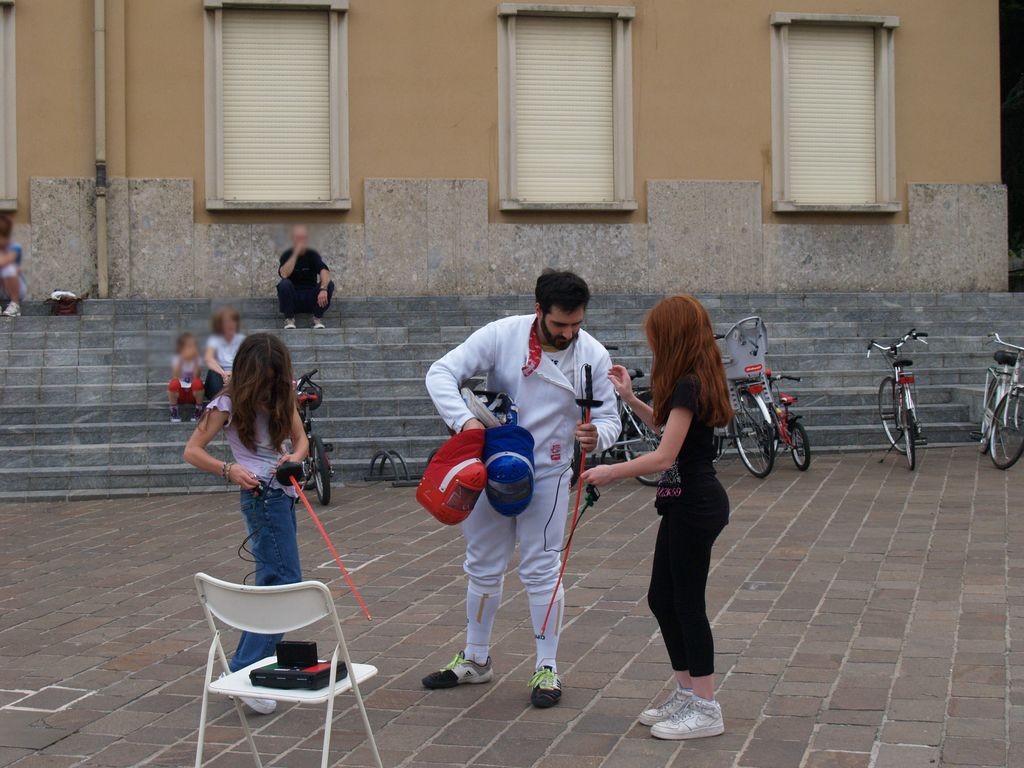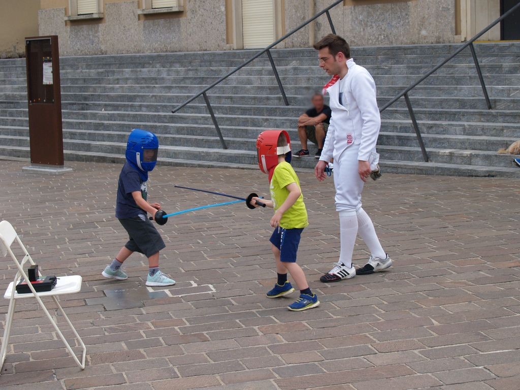Domenica 31 Maggio dalle ore 16 i volontari e gli istruttori del Club di Scherma brianzolo hanno portato la scherma in piazza a Bellusco facendo partecipare a giovani e meno giovani a dimostrazioni pratiche di scherma.
